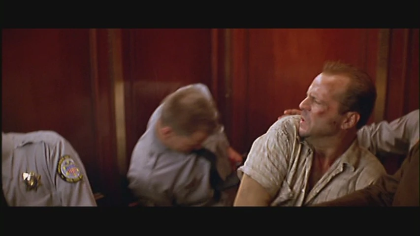 | Fritz sprang a surprise attack on McClane with Karl and Franco from an elevator, but McClane fires several shots into his chest. | |||||
