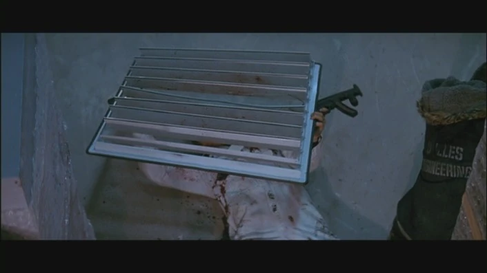 | McClane drops the vent grate on O'Reilly and shoots him several times in order the chest to save Leslie Barnes. | |||||