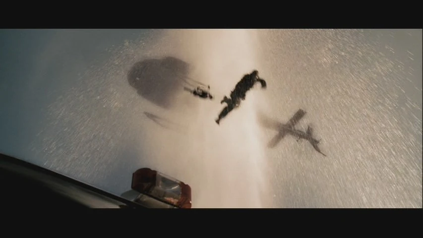| McClane shoots at Burke's snowmobile, causing him to crash into frozen lake. | |||||
