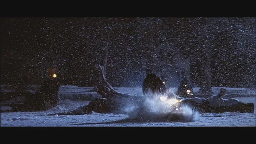 | McClane shoots Garber twice in the chest to hijack his snowmobile. | |||||