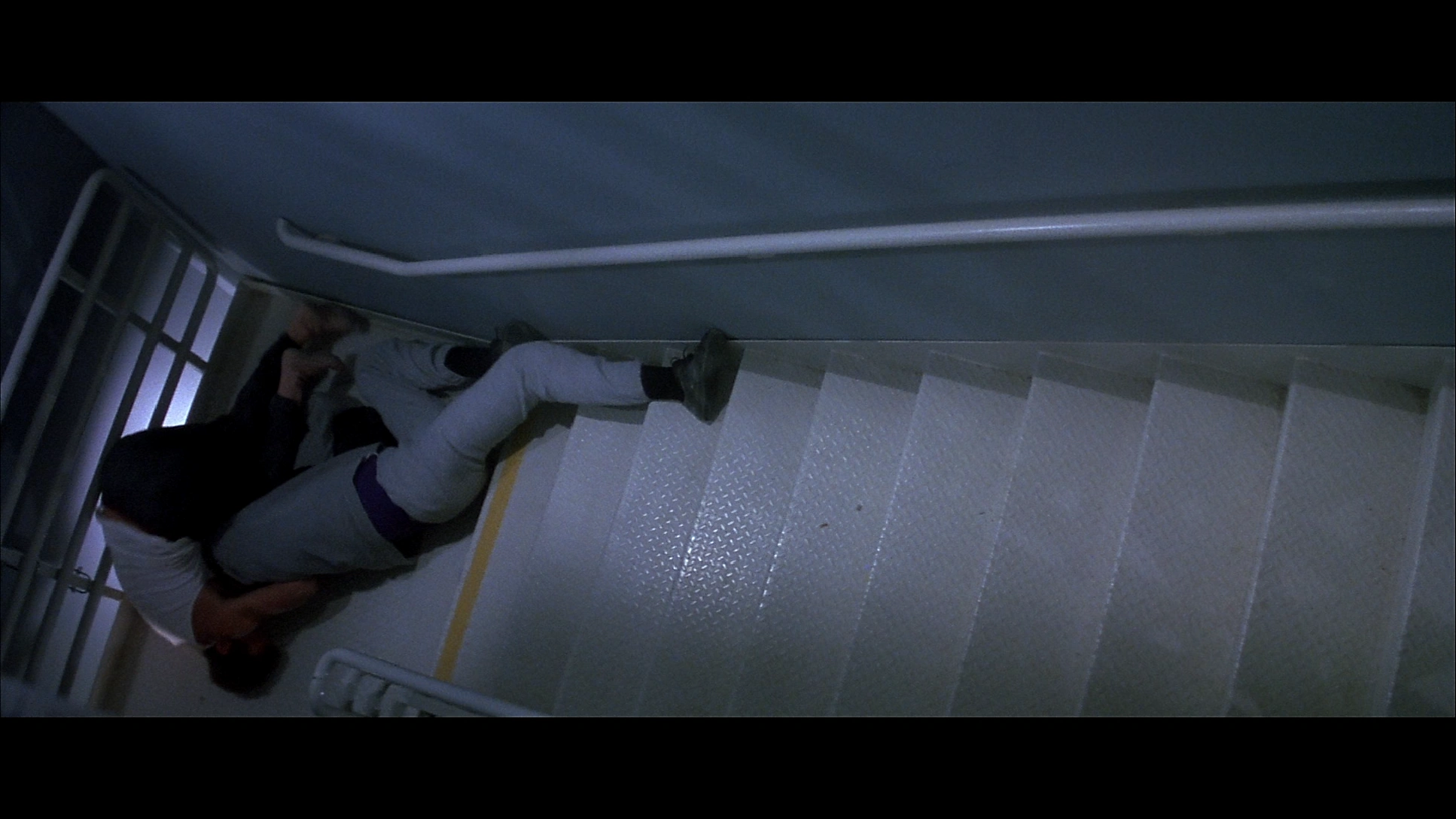 | McClane knock Russo down the stairs after tossing him and the chair down this ramp. Russo was rather bruised and bloodied up and McClane left him behind after he fired a shot away from him to scare Gabriel on the radio. It is implicitly stated that he died afterwards. | |||||