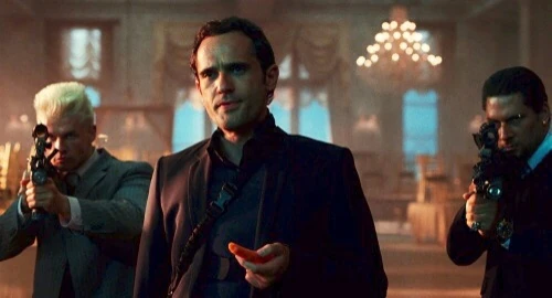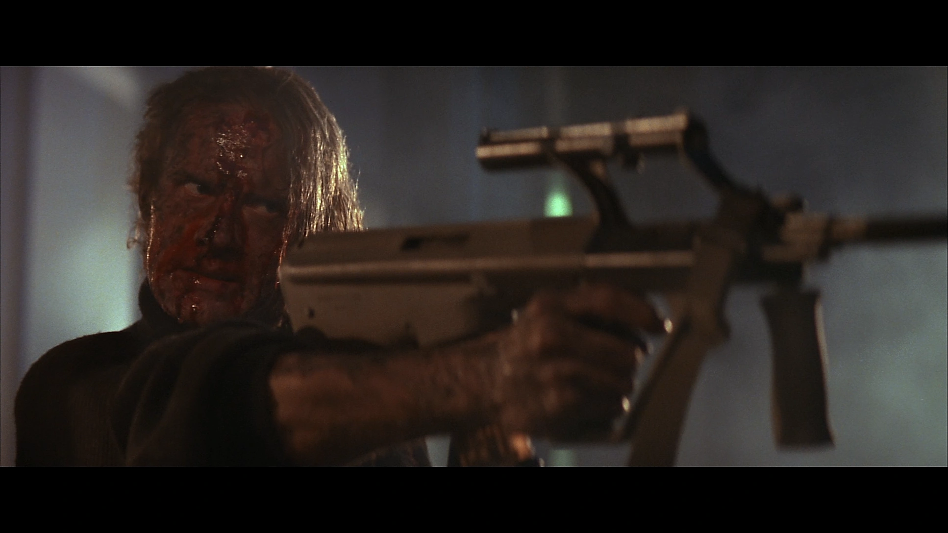 When McClane finds the C4 explosives and tries to warn Sgt. Al Powell about the terrorist's plans to destroy the roof, Karl arrives and points his AUG rifle to McClane's left cheek with it, forcing him to stop. Before Karl can kill McClane with it, the two get into an intense fight where McClane gets the upper hand by wrapping chains around his neck, seemingly hanging him. After the death of Hans, Karl arrives outside the building and points his AUG at McClane and his wife, Holly, to try and kill them one last time. But Powell shot him several times with his service revolver before he could do so.