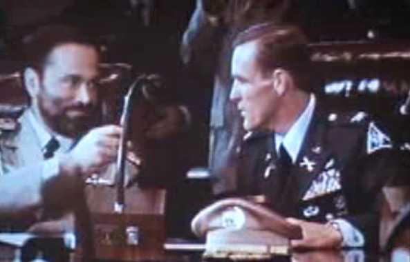 Colonel Stuart signing a document with General Esperanza